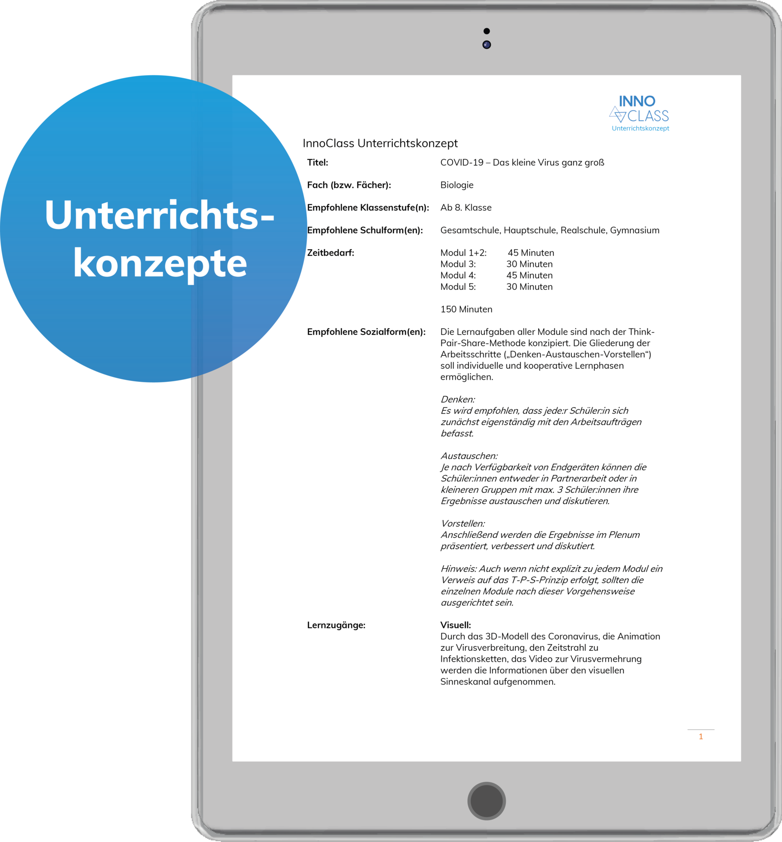 Neben der komfortablen Arbeit mit InnoClass bieten wir zur Vorbereitung eines mediendidaktischen Unterrichts wissenschaftlich fundierte Unterrichtskonzepte an. Diese definieren konkret das Ziel des Lerninhaltes sowie die didaktische Legitimation.